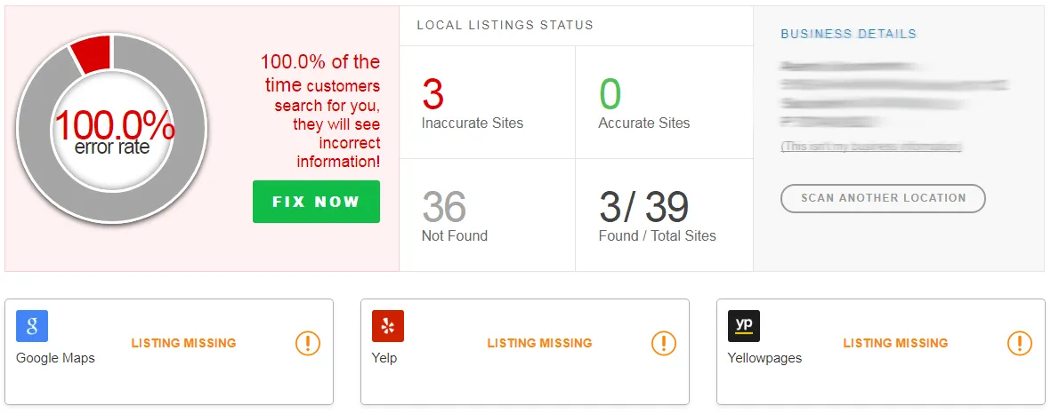 Our FREE scan tool instantly gives you the percentage of times when customers are searching for your business and getting wrong information.